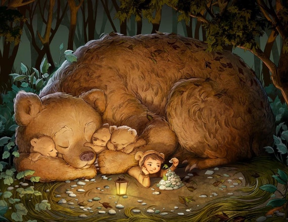 Whimsical Childrens Book Illustration Sleeping Bear Family Etsy